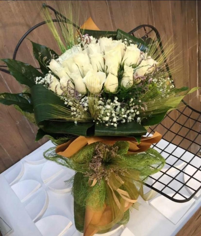 Beyaz Güllerden Şık Buket