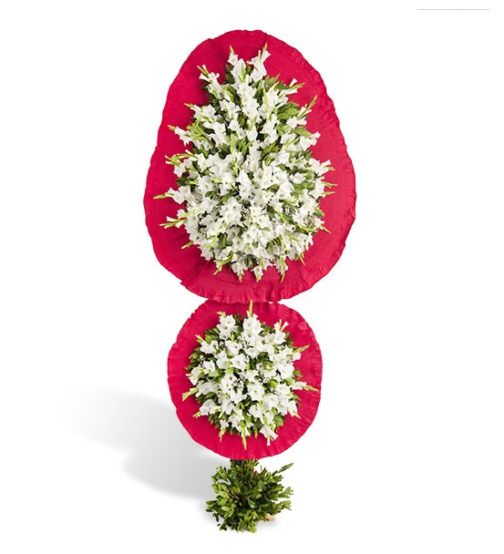 Beyaz Mevsim Çiçeklerden 2 Katlı Çelenk
