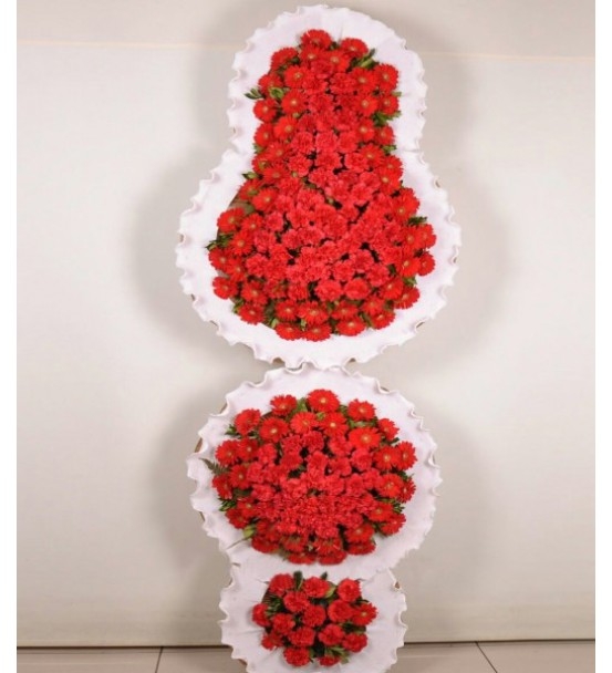 3 Katlı Kırmızı Çiçeklerden Ayaklı Sepet