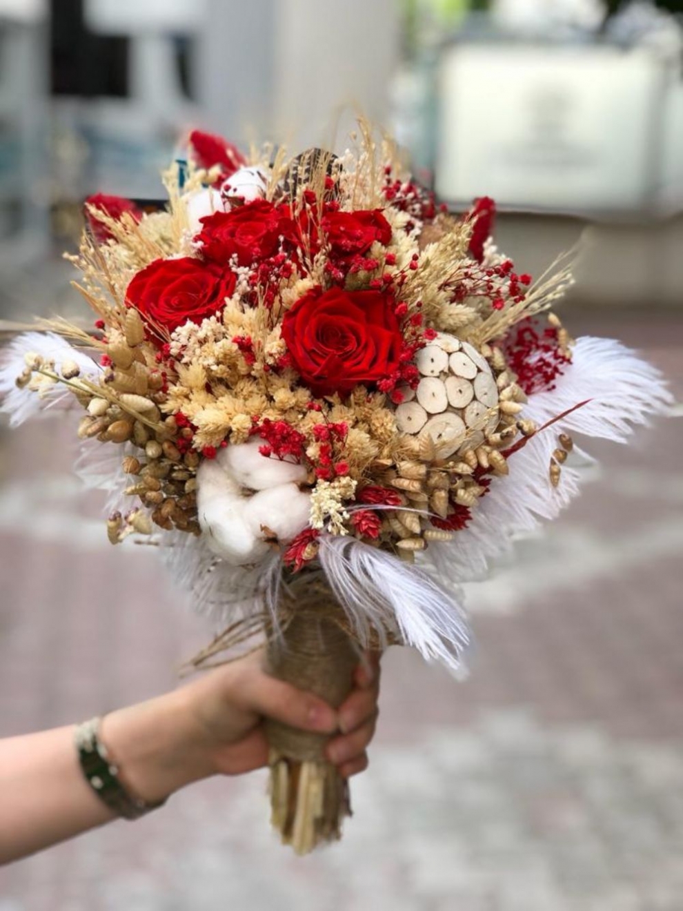 Renkli İhtal Çiçeklerde Gelin El Buketi