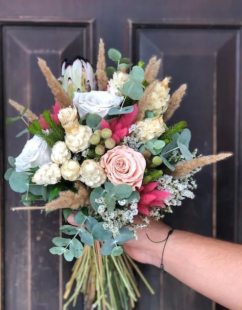 Renkli Mevsim Çiçeklerinden Şık Gelin El Buketi