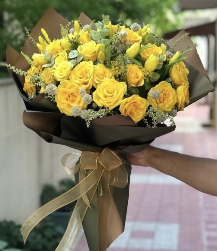 Sarı güller ve Sarı Laleler'den Oluşan Şık VİP Buket